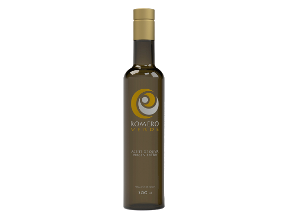A superior category extra virgin olive oil. Romero Verde Extra Virgin, harvested in November and following the strictest quality controls, we obtain a superior category extra virgin olive oil. Stored in a striking golden bottle, its contents offer us a balanced oil, with a medium bitterness and spiciness. Ideal for enhancing any dish.