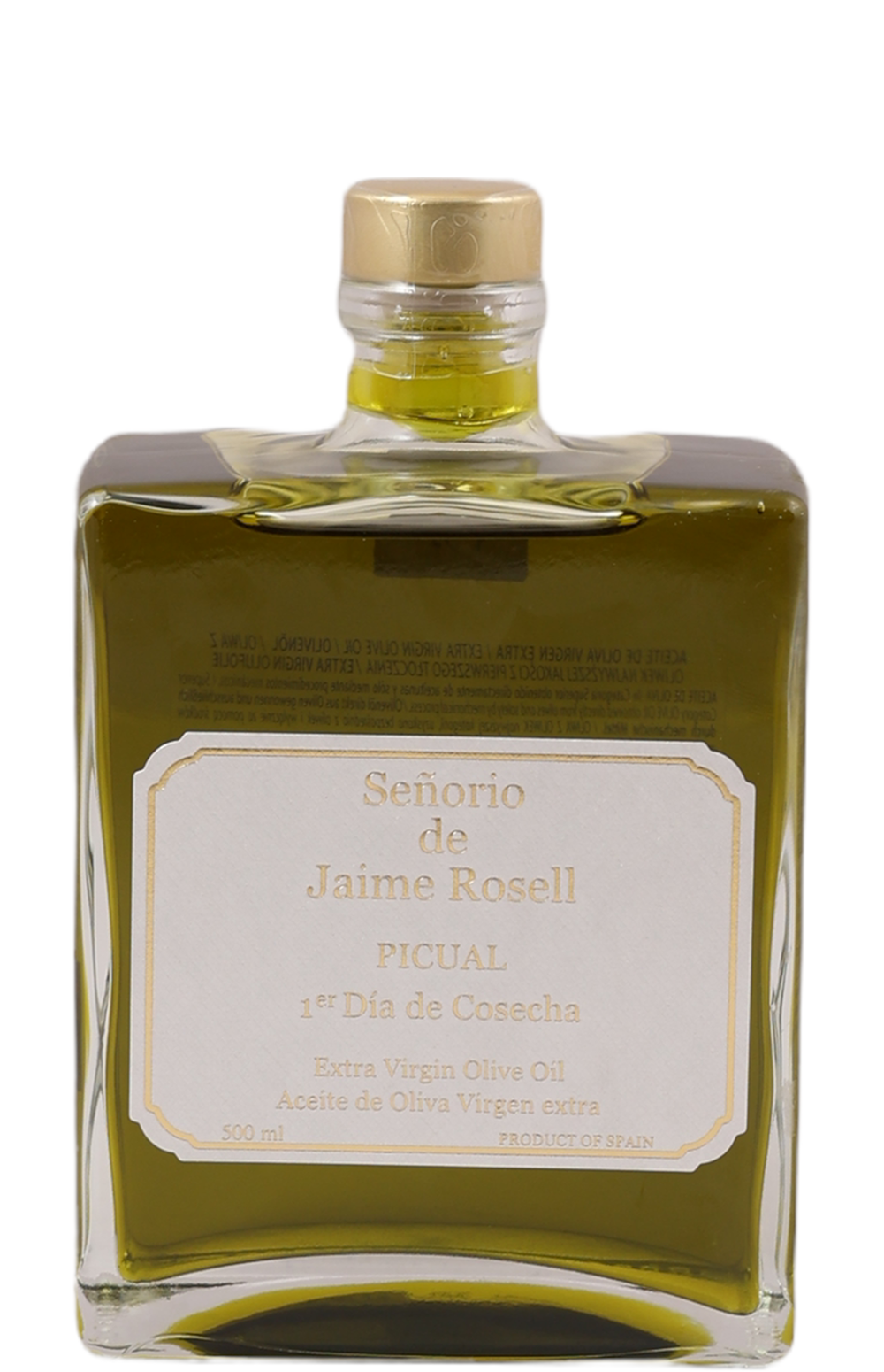 Señorío de Jaime Rosell FAMILY RESERVE Extra Virgin olive oil blends different varieties of olives, such as Green Arbequina and Ripe Arbequina, with native local varieties like Alfafarenca, Blanqueta and Manzanilla. Designed and crafted for the private consumption of the family who owns and manufactures Señorío de Jaime Rosell, this is a very exclusive set of bottles that wish to share with the distinguished customers.